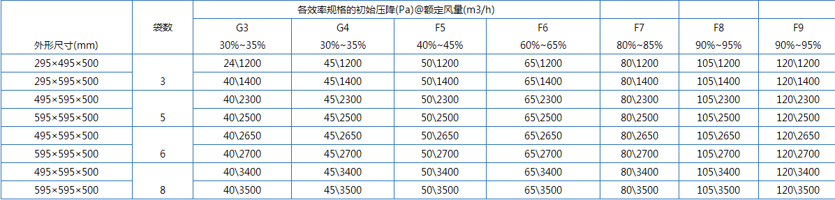 過(guò)濾效率等級(jí)G3~F9可供選擇