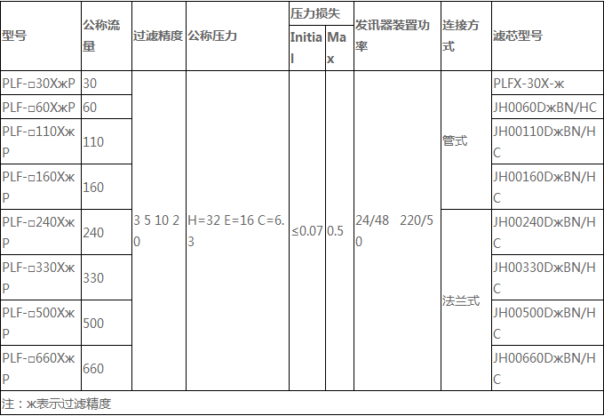 PLF-H110*10P黎明過濾器參數(shù):