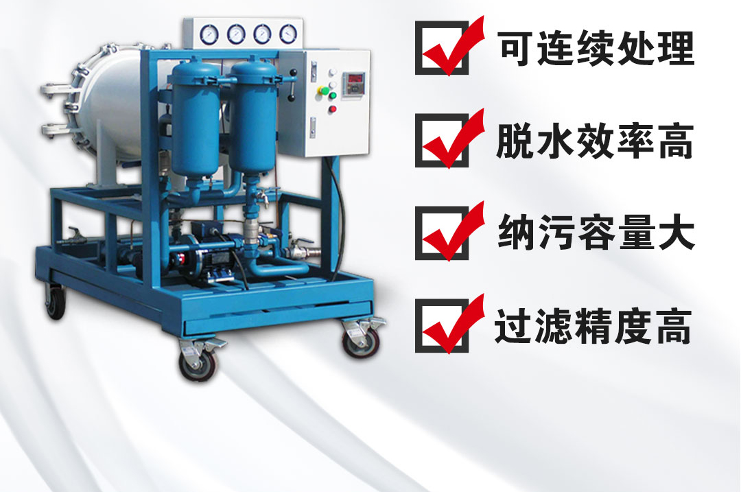LYC-25J系列聚結(jié)脫水濾油機的液壓潤滑系統(tǒng)中水的存在會引起油液氧化,使油液變質(zhì),減小油膜厚度,引起油液變性聚合而形成大分子,使油液粘度改變,形成有機酸,進而腐蝕金屬表面,降低或喪失油液的介電強度。同時該聚結(jié)脫水濾油機集精密過濾和高效脫水為一體,可有效清除油液中的顆粒雜質(zhì)和乳化水,游離水,而不損害原產(chǎn)品的品質(zhì)。對于含大量水分的油液,其分離效果尤為顯著,分離速度是傳統(tǒng)速度的幾倍到幾十倍。