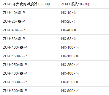 ZU-H高壓過(guò)濾器濾芯型號(hào)參數(shù):