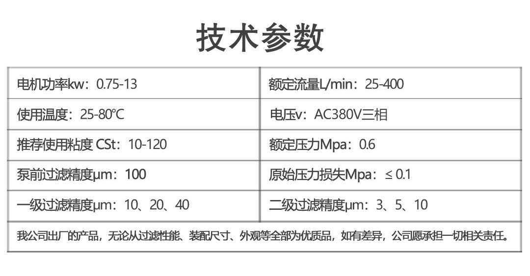 LYC-J系列燃油、輕質(zhì)油專用聚結脫水濾油機技術參數(shù):