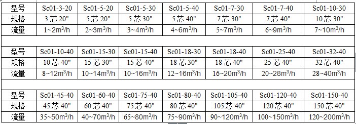 2.濾芯長(zhǎng)度:?jiǎn)喂?jié)、二節(jié)、三節(jié)、四節(jié)(每10″為一節(jié));