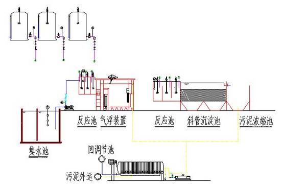 電鍍廢水處理設備由調節(jié)池、加藥箱、還原池、中和反應池、pH調節(jié)池、絮凝池、斜管沉淀池、廂式壓濾機、清水池、氣浮反應、活性炭過濾器等組成。